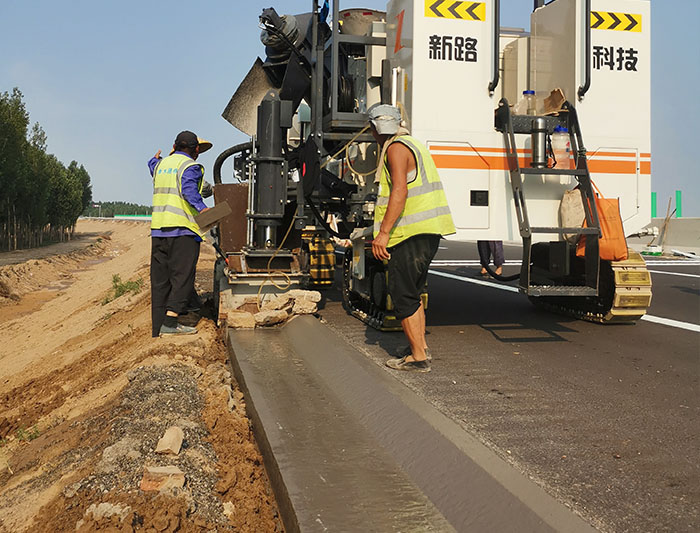 NC1300滑模攤鋪機(jī)在湖北路緣石滑模施工工程